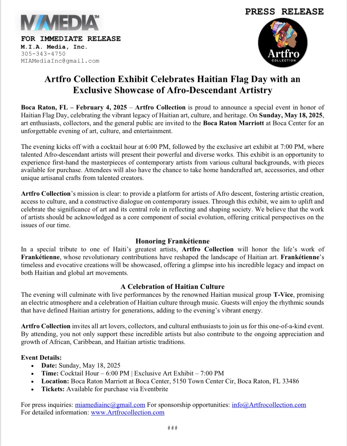 Press Note Dec 14 2025 By : Admin Artfro Collection is proud to announce a special event in honor of Haitian Flag Day ...